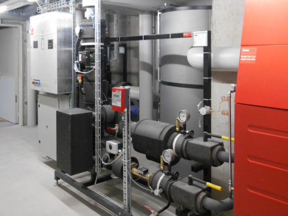 Integrale Systemlösung: mit dem Hochleistungsboiler EcoTherm EF 200/1000, der Übergabestation Hoval Trans-Therm 200 und dem Wärmeverteiler TransTherm Share ganz sportlich zum Minergie-Standard.