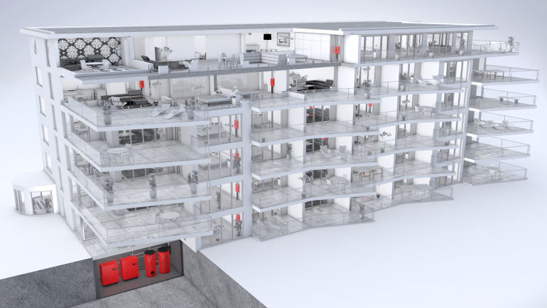 Für Investoren, die der Umwelt – und dem Komfort in den Wohnungen – erste Priorität einräumen wollen, ist dieses System das passende. Die beiden Wärmepumpen Thermalia dual und dual (H) finden hier zum effizienten und zugleich klimaschonenden System zusammen, ergänzt mit dem fixfertigen, installationsbereiten Heizungsverteiler TransShare. Komfortlüftungsgeräte HomeVent machen die zukunftsgerichtete Lösung perfekt. Kontrollierte Wohnraumlüftung dient allen: Die Bewohnerinnen und Bewohner haben stets saubere Luft, und der Investor kann damit den Wert der Gebäudesubstanz erhalten. Eine saubere Gesamtlösung – in jeder Hinsicht.