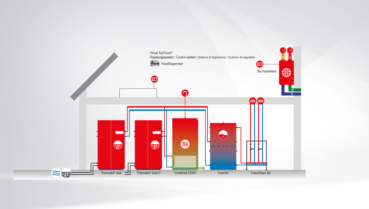 Wie viel Energie verbraucht die Heizungsanlage pro Tag, pro Woche, pro Monat, pro Jahr? Die Regelungs- und Leittechnik Hoval Supervisor hat sämtliche Komponenten des Systems im Griff und zeigt alles auf. Die Daten lassen sich auch per Fernzugriff abfragen.