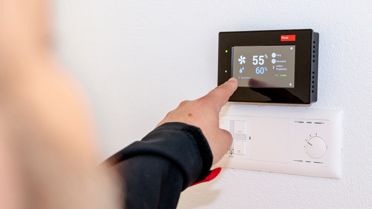 Der hohe Qualitätsanspruch von Roland de Stefani war es auch, der Giuseppe Campanella dazu veranlasste, ihm Philippe Anderegg, Technischer Verkaufsberater für Komfortlüftungen bei Hoval, vorzustellen - für ein unverbindliches Gespräch. Philippe Anderegg: „Herr de Stefani war anfangs nicht wirklich überzeugt vom Nutzen einer Komfortlüftung. Heute spart er dadurch Heizkosten, und die Bewohner geniessen ein gesundes Wohlfühlklima.“