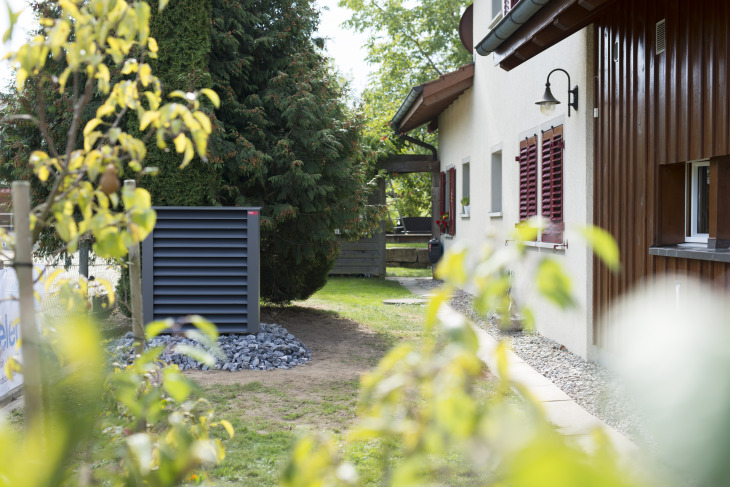 Die Luft/Wasser-Wärmepumpe von Hoval arbeitet mit natürlichen Kältemitteln. Bereits heute entspricht sie damit der zukünftigen Gesetzeslage. Um die Wärme aus der Umgebungsluft zu gewinnen, gehört ein geräuscharmes Aussengerät zum System. Dank einer platzsparenden Monoblock-Bauweise ist die Wärmepumpe montagefreundlich.
