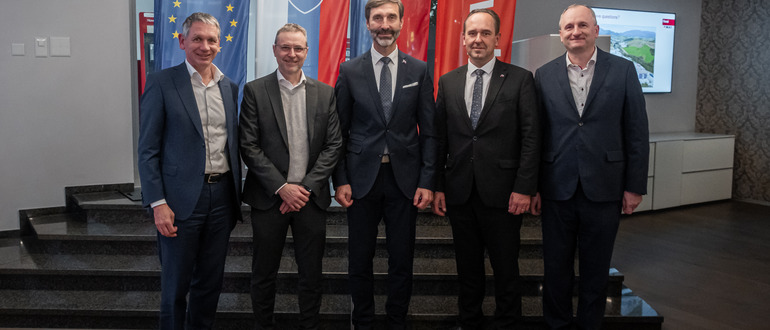 Verwaltungsratspräsident Dr. Richard Senti und co-CEO Fabian Frick empfingen die Delegation rund um Juraj Blanár in der Firmenzentrale. Nach der offiziellen Begrüssung und Unternehmenspräsentation erhielten die Gäste bei einer Werksführung Einblicke in die Produktion und die Innovationskraft von Hoval.