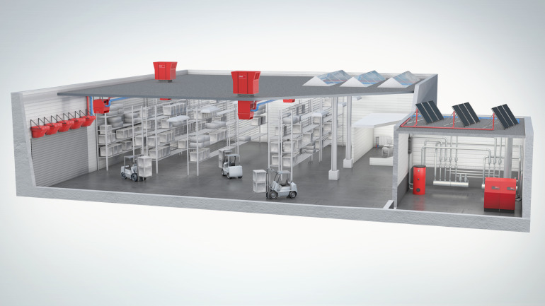 Raumklima-Lösung mit zentraler Wärmeerzeugung
