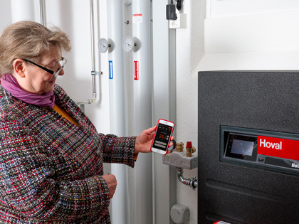 Dann hebt sie ihr Smartphone in die Höhe. „Und die Steuerung erledige ich ganz einfach mit der HovalConnect App.“ Und hat sich die Investition gelohnt? „Absolut. Ich hatte in der Vergangenheit Stromkosten von etwa 9000 Franken im Jahr.“ Gemäss den Berechnungen von Hoval-Verkaufsberater Giuseppe Campanella und Leonardo Bonni von Aquaperl liegen die Kosten in Zukunft bei kaum einem Viertel davon.