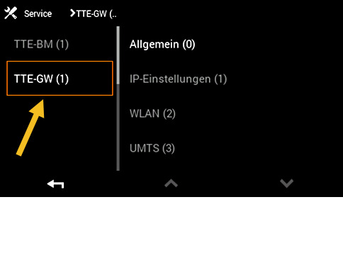 Wählen Sie den Menüpunkt TTE-GW (TTE-Gateway).