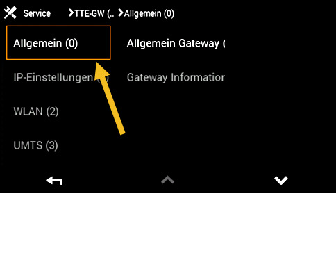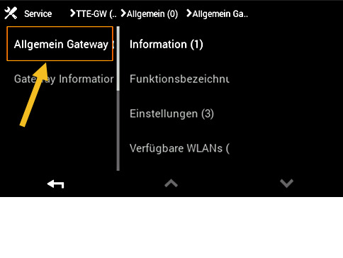 Wählen Sie den Menüpunkt Allgemein Gateway.