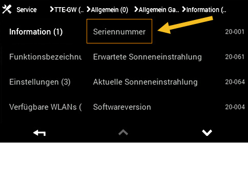 Mit nachfolgender Schritt-für-Schritt-Anleitung können Sie sich die Seriennummer ganz einfach im Bedienmodul anzeigen lassen.
