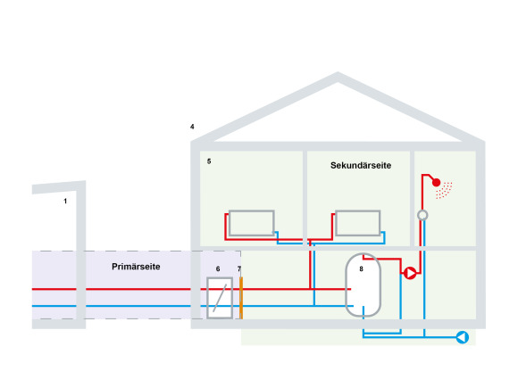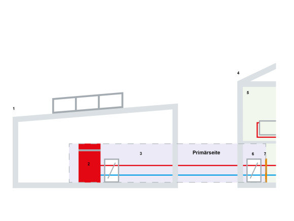 Die Primärseite ist vergleichbar mit einer herkömmlichen Wärmeerzeugung. Ihre Aufgabe besteht darin, die Wärme aus dem Fernwärmenetz zuverlässig aufzunehmen und an die Wärmeübergabestation Ihrer Liegenschaft weiterzugeben.