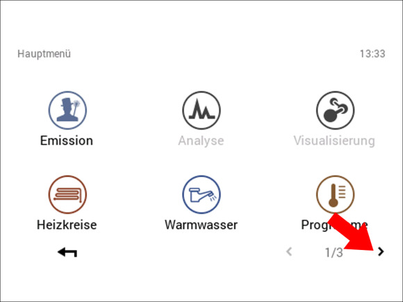Cliquez en bas à droite sur la flèche pour accéder à la 2e page de menus de réglage.