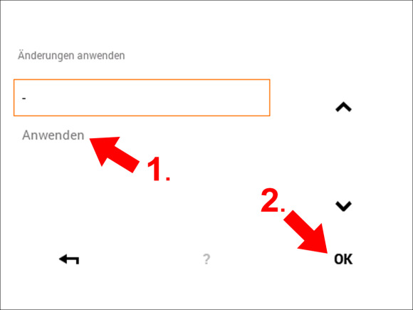 Vérifiez si dans la ligne «Appliquer les modifications», la désignation «Appliquer» s'affiche à droite.