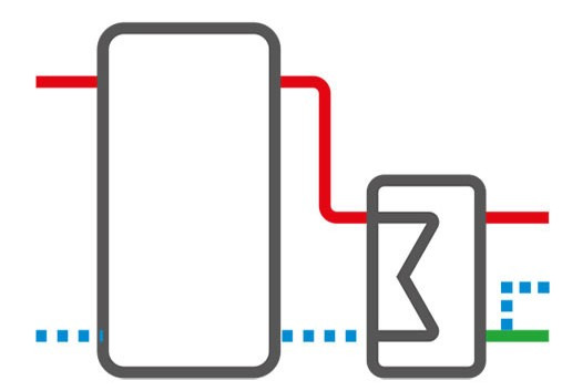Il est impératif que la pompe de circulation soit montée entre le producteur de chaleur, donc la chaudière, et les consommateurs de chaleur, et intégrée au système de conduites. Elle dispose de deux raccordements. L’un mène à la chaudière, l’autre guide l'eau en direction des radiateurs.