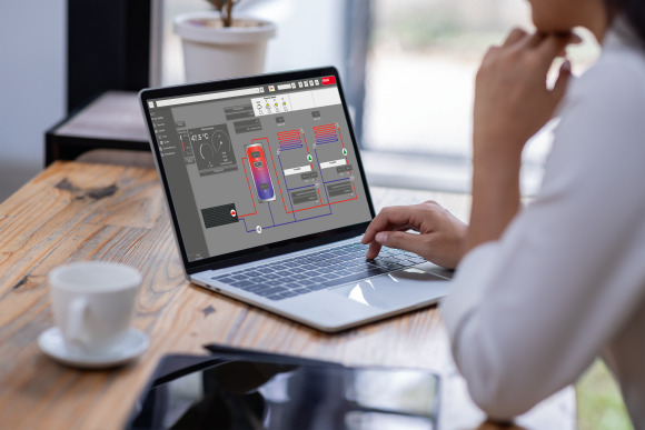 Combinazione perfetta: la nuova pompa di calore Belaria pro (40,50) estremamente silenziosa e il nostro sistema di controllo personalizzato HovalSupervisor cloud formano un