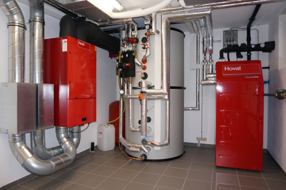 Nella casa unifamiliare della famiglia Höfle/Sohm, una pompa di calore a terra Thermalia e collettori solari termici di Hoval sono stati combinati per formare un sistema. Inoltre, esiste un sistema di ventilazione comfort HomeVent RS (250).