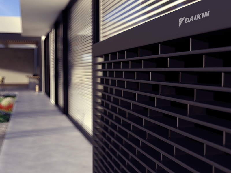 Anche il design dell’unità esterna ha il suo peso: del resto l’apparecchio deve potersi inserire in maniera armonica nel complesso esistente. La pompa di calore Daikin è infatti apprezzata per il suo design elegante.