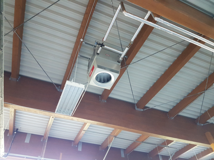 All’interno, sul soffitto del Centro di competenza sul legno Pannonia, sono montati due sistemi a ricircolo d’aria TopVent.